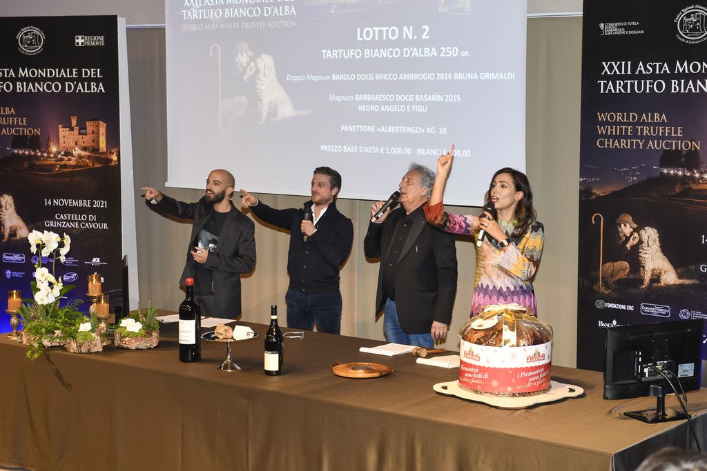 Quattro maxi Panettoni Albertengo sono stati battuti tra i lotti di tartufi bianchi e magnum di Barolo e Barbaresco della XXII Edizione dell'Asta Mondiale del Tartufo Bianco d'Alba, evento internazionale di solidarietà ospitata al Castello di Grinzane Cavour in collegamento con Hong Kong, Mosca, Dubai e Singapore.