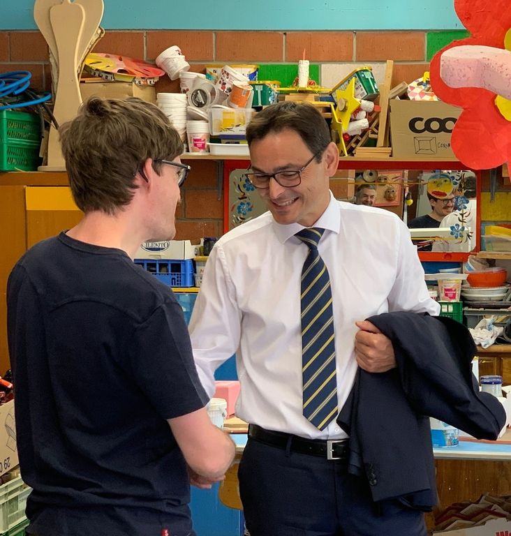 La seconda tappa si è svolta nel Mendrisiotto, con la visita dell’Istituto San Pietro Canisio di Riva San Vitale e quella al Centro diurno socio assistenziale di Vacallo. L’Istituto Canisio, gestito nello spirito del Progetto educativo di Don Guanella, è finalizzato a perseguire l’inclusione scolastica, sociale e professionale dei giovani e degli adulti con disabilità. Nei prossimi anni sarà interessato da importanti lavori di ristrutturazione e ampliamento, in particolare con il nuovo centro per ospitare Arco, la comunità socio-terapeutica riservata alla fascia di giovani fra i 14 e i 18 anni. Il direttore della struttura Don Salvatore Costantino, meglio conosciuto come Don Tino, ha illustrato al Consigliere di Stato De Rosa lo sviluppo previsto, prima di introdurlo agli ospiti e utenti dell’Istituto con cui il direttore del DSS si è intrattenuto in modo informale.