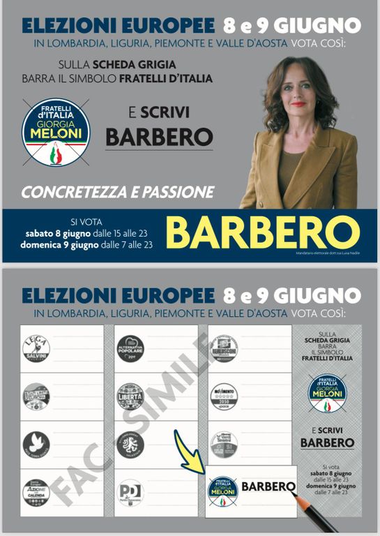 L’8 e il 9 giugno, scrivere Federica BARBERO con una croce su Fratelli d’Italia sarà garanzia di dare valore al vostro voto”.