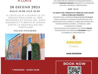 In questo spazio, mercoledì 26 giugno 2024 alle 18:00 si terrà una nuova tappa di Vermouth a Corte, prestigioso evento dedicato al vino aromatizzato più famoso al mondo nato a Torino nel 1786; l’appuntamento è nell’ambito della terza edizione della Vermouth di Torino Week, un’iniziativa ideata dal Consorzio del Vermouth di Torino che si celebra da domenica 23 fino a domenica 30 giugno 2024.