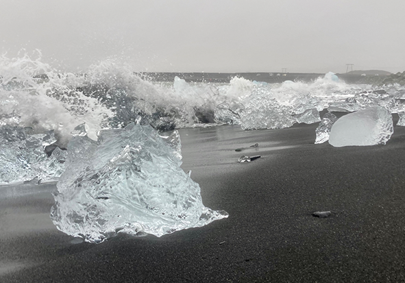 (Fabrizio). Ecco alcuni flash, a est e poi a sud. Seyðisfjörður, un villaggio adagiato all'interno di un fiordo riparato; le case colorate, come una manciata di caramelle gettate sulle rive, contrastano con il paesaggio aspro e malinconico. C'era una strana sensazione di isolamento, come se fossimo ai margini del mondo conosciuto; eppure, non c'era solitudine in quel silenzio, ma solo pace. La spettacolare cascata di Hengifoss una delle più alte d'Islanda, incorniciata da strati di rocce vulcaniche rosse e nere che raccontano milioni di anni di storia geologica. Qui, la potenza della natura ti ipnotizza e le gocce d'acqua quasi ti sfiorano il viso, come se quel luogo unico cercasse un contatto. Poi la “Laguna Glaciale” che si frantuma sul mare, su una spiaggia nera vulcanica, chiamata Diamond Beach, dove il ghiaccio brilla sotto il sole come se fosse fatto di diamanti. Una scena che sembra uscita da una fiaba per bambini.