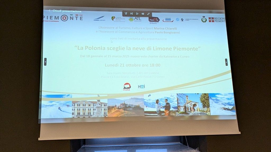 Il progetto “Ski Route Montagna Cuneese Inverno 2025” - sostenuto da Camera di commercio di Cuneo, ATL del Cuneese ed Ente Turismo Langhe Monferrato Roero - è stata presentato ieri, 21 ottobre, presso la sede ATL di Cuneo alla presenza dell’Assessore regionale Paolo Bongioanni (Commercio, Agricoltura e Cibo, Caccia e Pesca, Parchi), del Presidente della Camera di commercio di Cuneo, Luca Crosetto, del Presidente del C.d.A. di Visit Piemonte, Beppe Carlevaris; del direttore di Cuneo Airport, Anna Milanese; dei presidenti delle ATL del Cuneese e Langhe Monferrato e Roero, Mauro Bernardi e Mariano Rabino, di Danilo Turletto di ITAKA, del sindaco di Limone Piemonte, Massimo Riberi e Antonella Zanotti AD della società impianti di Limone LIFT."Questa iniziativa sul mercato turistico polacco è particolarmente opportuna perché si rivolge ad un pubblico dal grande potenziale, che già da tempo manifesta interesse per l’Italia e che negli ultimi anni ha scoperto anche il Piemonte - sottolinea l’Assessore regionale al Turismo, Cultura e Sport della Regione Piemonte, Marina Chiarelli - Sono certa che la neve delle montagne di Cuneo e le eccellenze culturali ed enogastronomiche delle Colline contribuiranno a consolidare la reputazione della nostra regione e a creare un circolo virtuoso, che accosti alle attività istituzionali di promozione l’efficacia del passa-parola".