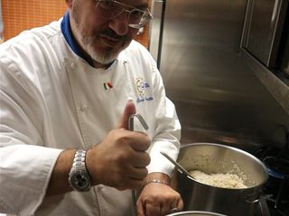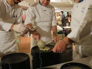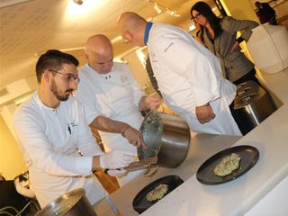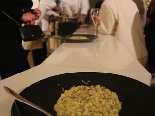 Il riso, mantecato in diretta di fronte al pubblico, ha catturato l'attenzione degli ospiti, che sono rimasti letteralmente affascinati dal gusto e sapore intenso del piatto. In apertura della serata, lo chef Valter Ferretto, rappresentante piemontese di Euro Toques e da oltre 35 anni stella Michelin, aveva deliziato i partecipanti con i migliori salumi e formaggi delle Langhe, insieme a preparazioni gustose come la battuta al coltello e l’uovo tartufato.