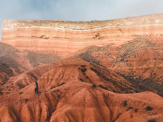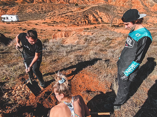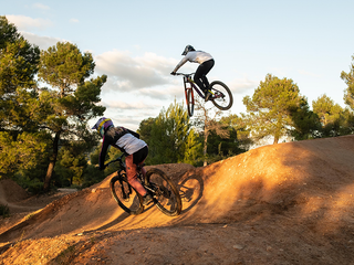 Prima tappa Barcellona, dove abbiamo visitato il leggendario La Poma Bike Park. È un luogo iconico per chi pratica dirt jump, una disciplina della mountain bike che consiste nell’eseguire salti e acrobazie su rampe di terra. Entrare lì è stato come vivere un sogno: bambini, atleti pro e molte ragazze che si allenavano insieme. Ho percepito un ambiente davvero inclusivo e stimolante. L’emozione era così forte che per le prime due ore non sono riuscita nemmeno a salire in bici, poi non sarei più scesa dalla sella! Ma, uno dei momenti che non posso dimenticare è stata l’avventura nel deserto del Teruel. Viaggiavamo di notte e siamo arrivati con una fitta nebbia. Al mattino, con il sorgere del sole, davanti a noi si è aperto uno scenario straordinario: rocce friabili, canyon scolpiti dal vento, colori caldi che sfumavano dal marrone al crema. Ci siamo messi subito al lavoro: con Ivan abbiamo esplorato il terreno per costruire delle linea di freeride, ovvero un percorso non tracciato che il rider disegna autonomamente sfruttando le forme del paesaggio. Io, oltre a essere biker, sono anche trail builder — realizzo e mantengo sentieri per la mountain bike — quindi per me è stato davvero entusiasmante trovarmi in un luogo così unico. In quel paesaggio quasi lunare, circondati da rapaci che volteggiavano sopra di noi, ho percepito una connessione fortissima con l’ambiente.