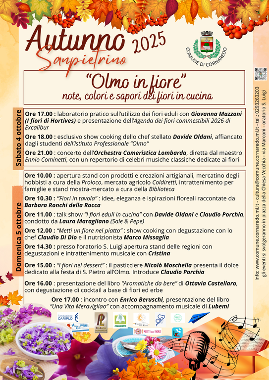 “Olmo in fiore”, l’edizione 2025 di Autunno Sanpietrino, è un evento che unisce i linguaggi del gusto, della musica e della parola, valorizzando la cultura del fiore come simbolo di bellezza e nutrimento. Due giornate in cui il borgo di San Pietro all’Olmo accoglie grandi maestri, personaggi dello spettacolo, personalità di rilievo e giovani artisti, offrendo al pubblico un’esperienza che è al tempo stesso raffinata e popolare, emozionante e conviviale.