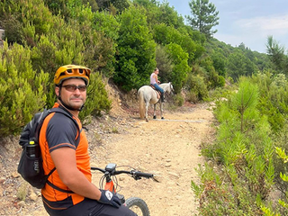 Flavio Di Malta, 40 anni, è nato a Sanremo. Cresciuto con il calcio, ha dovuto abbandonarlo a causa di un infortunio al ginocchio. È stata la bicicletta, lasciata a 14 anni, a riportarlo su una strada inattesa: quella del cicloturismo. Oggi è guida accreditata presso la Regione Liguria e l’Accademia Nazionale di Mountain Bike. Dal 2020 questa è la sua professione principale, dopo una fase iniziale da attività estiva e occasionale.