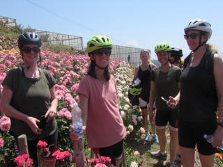 Uno dei più apprezzati parte dalla ciclabile e porta verso l’entroterra. Dopo una prima salita al Poggio, celebre per la Milano–Sanremo, si entra nei caruggi rapiti dal fascino del Borgo. Poi si attraversa il roseto di Antonio Marchese, un ibridatore che mi ha dato fiducia e mi permette di portare dentro i partecipanti. Si prosegue fino a Ceriana, dove vale la pena fermarsi a scoprire chiese e confraternite. Da lì, uno sterrato tra ulivi e terrazzamenti porta verso Bussana Vecchia, paese rinato grazie agli artisti. La giornata si chiude con un rientro dolce, magari un aperitivo vista mare. È un tour che mescola natura, cultura e socialità: l’essenza del cicloturismo.