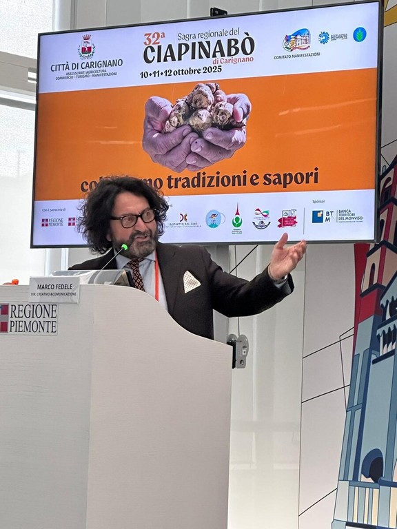 Ore 15:00Inaugurazione Ufficiale della "32° Sagra Regionale del Ciapinabò" di Carignano. Segue ShowCooking con lo chef stellato Christian Milone della Trattoria Zappatori di Pinerolo che propone una sua creazione dedicata al Ciapinabò-Topinambur.