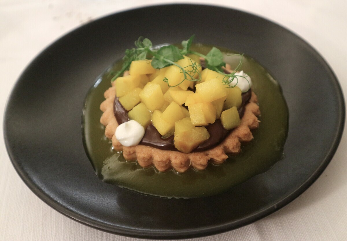 A chiudere il percorso, il Dolce: deliziose tartalette con crema al cioccolato e pere cotte con curcuma, cardamomo e anice stellato, servite con panna vegetale e abbinate all’aromatico Asti Spumante DOCG Acquesi.