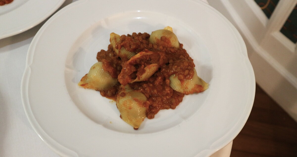 Come piatto principale, lo chef ha proposto lumaconi di pasta di semola con ragù vegetale di lenticchie, impreziositi dalla nota piccante del Nasturzio disidratato, che ha aggiunto un tocco vivace e aromatico al piatto. Il sapore deciso è stato ulteriormente esaltato dall’abbinamento con la Barbera d’Asti DOCG Ricossa, dal carattere intenso e avvolgente.