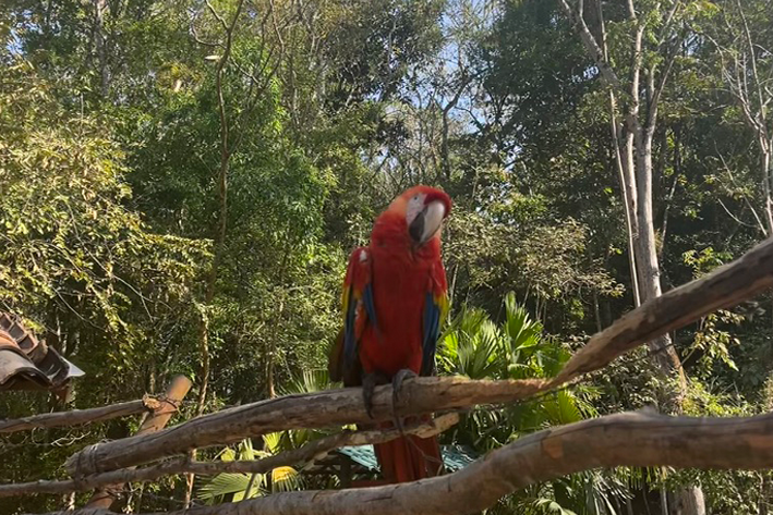 L’ingresso al sito archeologico è discreto, una parete di pietra e legno con la scritta Bienvenidos Sitio Maya de Copán. Entrare nel parco è come attraversare una soglia invisibile. Il rumore della strada svanisce e resta solo il suono degli uccelli. Le guide camminano lente, con il cappello di tela e un bastone levigato dall’uso. Una di loro solleva una piuma rossa e dice: “Ogni pietra è una parola scritta per non morire.” La voce si perde tra le foglie alte, dove il sole filtra a chiazze e il tempo sembra sospeso. Un’ombra colorata attraversa l’aria. È un’Ara Macao, il suo piumaggio un’esplosione di rosso, giallo e blu. Si posa su una ringhiera e resta immobile, con lo sguardo fiero di chi appartiene a un’altra epoca. I Maya la veneravano come incarnazione del sole, e qui è tornata libera dopo decenni di assenza. Nel suo volo c’è la memoria che si fa carne, la bellezza che resiste al tempo.