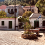 Pochi metri più in alto, una piazzetta si apre all’improvviso: tavoli di legno, un muro bianco con una sola parola scritta in nero — “Mediterraneo”. È impossibile non pensare al film di Gabriele Salvatores, girato qui e premiato con l’Oscar. Una storia di uomini sospesi tra la guerra e una terra remota che li disarma, prima ancora di accoglierli. Quella scritta non è decorazione: è memoria sedimentata, più incisiva di qualunque brochure. Attorno, muri scrostati e facciate restaurate convivono senza spiegazioni; la scena è vuota e viva allo stesso tempo, come se qualcuno dovesse comparire da un momento all’altro. Poco distante si trova la Santrapeia School, fondata nel 1903 della diaspora greca che è uno degli edifici simbolo di Kastellorizo. La sua architettura neoclassica, con colonne e timpano, testimonia il periodo di grande sviluppo a inizio Novecento, quando cultura e commercio fiorivano grazie alla posizione strategica e al momento storico. Oggi l’edificio resta un punto di riferimento solo identitario per gli abitanti.