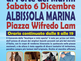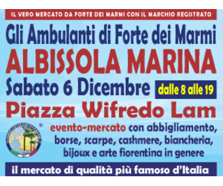 L’originale Consorzio de Gli Ambulanti di Forte dei Marmi® ad ALBISSOLA MARINA sabato 6 dicembre. Le originali e ormai mitiche boutique a cielo aperto® sono attese in Piazza Wifredo Lam