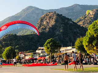 Scendono dalla montagna di Babadağ e atterrano sulla spiaggia. La manovra è rapida: sabbia, ghiaia, un soffio di vento e la vela si piega a ventaglio prima di essere raccolta a terra. La scena si ripete più volte, ogni giorno, davanti alla stessa baia. E’ considerato uno dei migliori siti al mondo per il parapendio: partenze dai 1.200 ai 1.900 metri, vento stabile, vista aperta sul Mediterraneo. Per molti, qui, l’avventura comincia da questa immagine. Un volo che finisce a pochi metri dal mare.