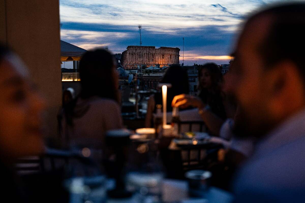 Le Terrazze al Colosseo, all’interno dell’Hotel Mia in via Capo d’Africa, è uno di quei rooftop romani in cui la vista non è un semplice valore aggiunto, ma parte integrante dell’esperienza. Il Colosseo, lì davanti, diventa una presenza costante: scenografia reale, soprattutto al tramonto, quando la luce cambia e la terrazza invita a rallentare, a fermarsi anche oltre il tempo canonico della cena.