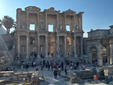 Scendendo verso la costa dell’Egeo, l’aria si fa più umida. Gli ulivi occupano le colline con eleganza geometrica. Tra pendii chiari e sentieri polverosi appare Efeso. Non è solo un sito archeologico: è la testimonianza di un sistema urbano complesso. La via principale scende, verso il basso, tra pavimentazione perfetta e capitelli caduti. Commercio, culto, politica: tutto organizzato con precisione romana. La Biblioteca di Celso domina la prospettiva. La facciata, con colonne sovrapposte e nicchie allegoriche, è un manifesto di comunicazione visiva. È un edificio pensato per essere guardato frontalmente, per produrre consenso attraverso la proporzione. I visitatori si dispongono davanti come un pubblico in attesa dello spettacolo. Poco oltre, il Grande Teatro apre la sua curva verso la pianura: migliaia di posti scolpiti nella collina, un’architettura che organizza voce e sguardo. Efeso non suggerisce malinconia. È un manuale a cielo aperto su come si viveva. Ma è anche la dimostrazione di come le “cose" cambino.